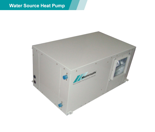 整体式/分离式水源(地下水工况,水环工况,地下环路工况)热泵机组以电作为动力,采用系统循环水,从水井、湖泊、河流、海洋中抽取的水或埋于地下盘管中循环流动的水为冷(热)源,经室内循环空气与室内机热交换器能量转移后,送入所需空调房间。